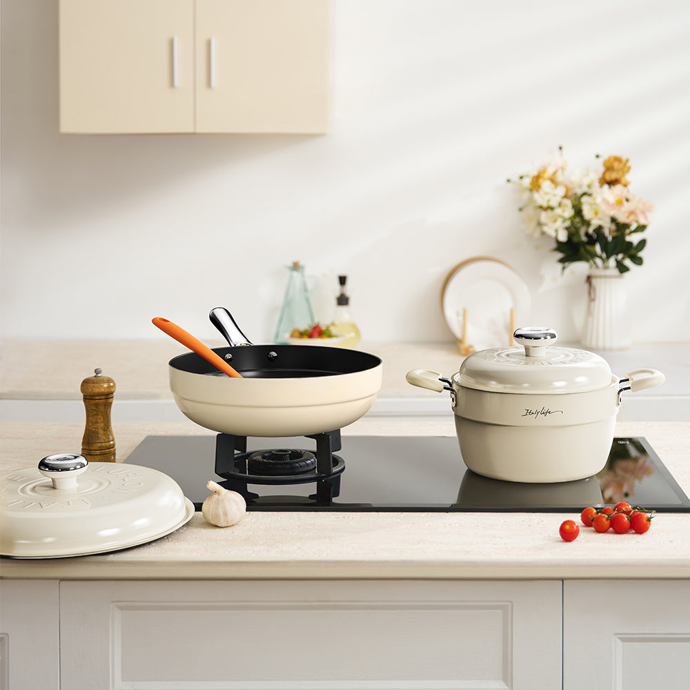 Bring nature and health into the kitchen. External ceramic glaze, conveying Italian aesthetic classic. Light oil and less smoke, enjoy exquisite life.